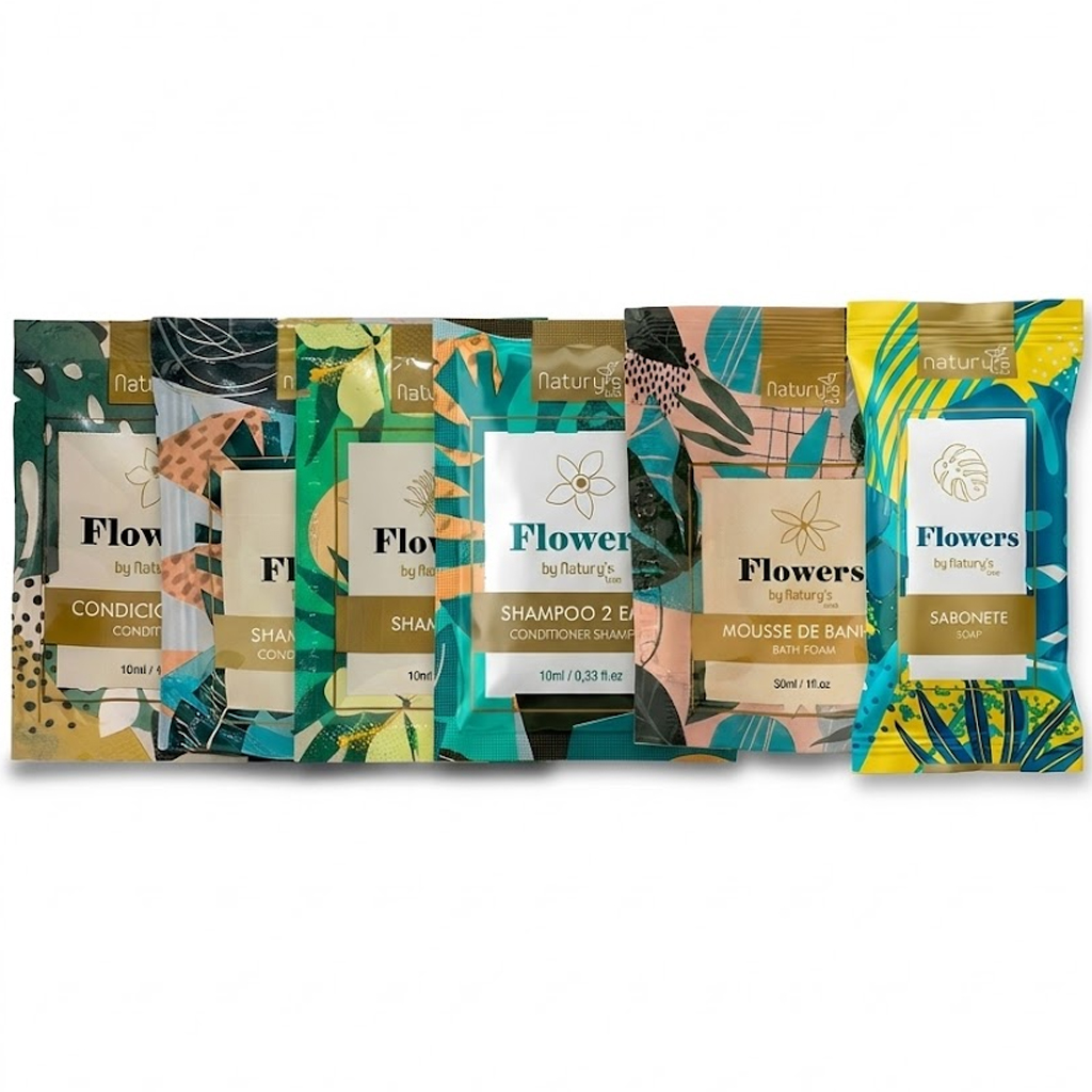 Leve a experiência do seu hóspede para um novo nível com o Kit Amostra da Linha Flowers by Natury's Luxo. Desenvolvido especialmente para anfitriões exigentes, este kit de degustação reúne o melhor em cuidados pessoais com uma identidade visual vibrante, moderna e acolhedora.