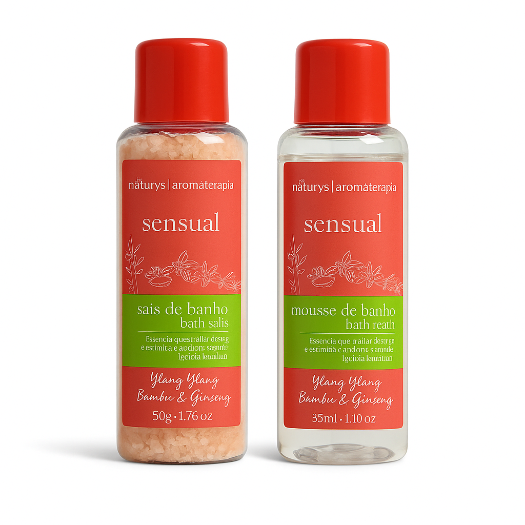 O Kit Sensual da linha Naturys Aromaterapia foi criado para transformar o banho em um momento de prazer e bem-estar. Com a combinação envolvente de Ylang Ylang, Bambu e Ginseng, este kit proporciona um toque de sofisticação e sensualidade, ideal para cuidar do corpo e relaxar a mente.
